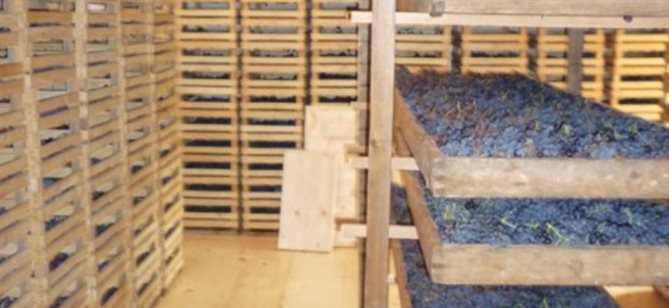 Den Anfang macht das Appassimento-Verfahren. Die Trauben werden in gut belüfteten Räumen (Fruttaio) gelagert. Auf Holzgestellen mit Bambusmatten (Arele), in Holzkistchen oder heute gebräuchlicher in Plastikkistchen, verweilen sie dort zwei bis drei, teilweise sogar sieben Monate lang, um zu trocknen. Dabei verlieren sie 30 bis 40% Prozent ihres Eigengewichts, weshalb man vom Schwund – auf Italienisch «Appassimento» – spricht.