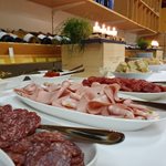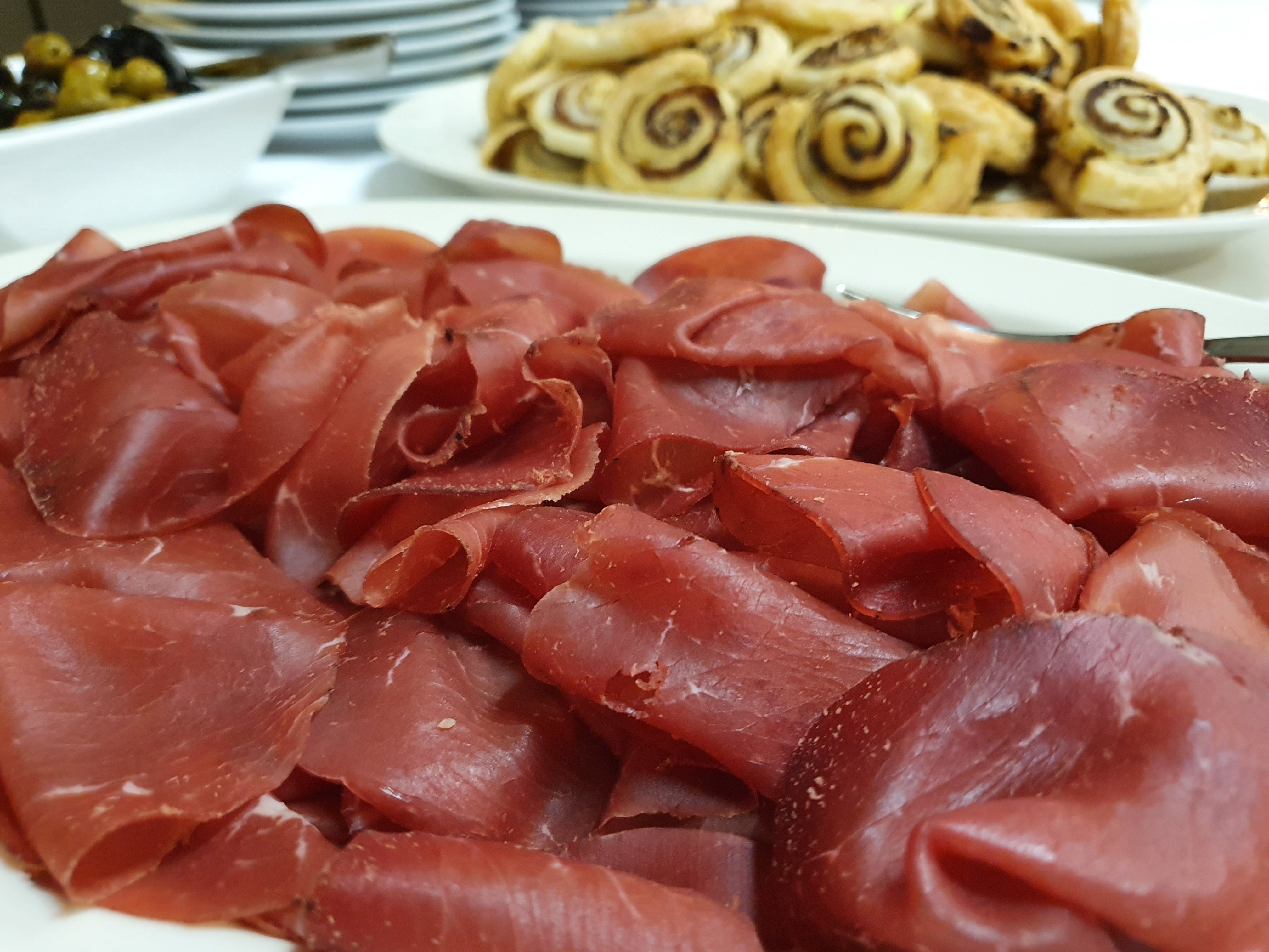 Zum Abschluss konnten wir uns an einem reichhaltigen Käsebuffet bedienen. Danach gab es Kaffee oder einen Espresso. Fast sämtliche Lebensmittel, die uns stilvoll serviert wurden, stammten aus dem Piemont.