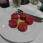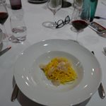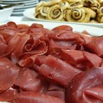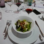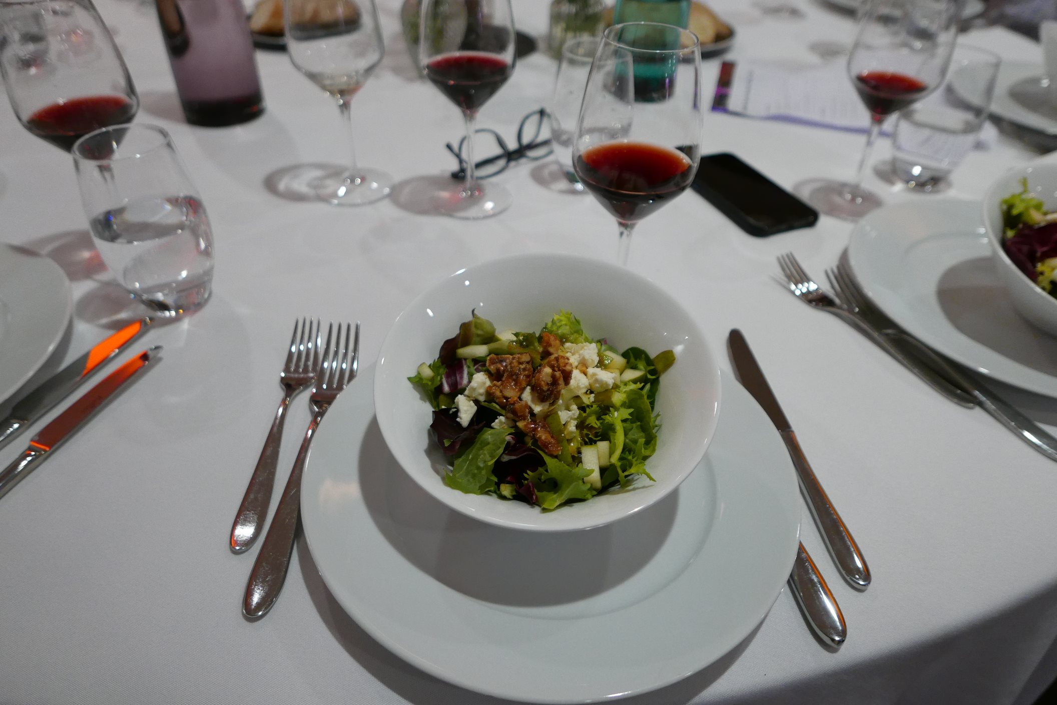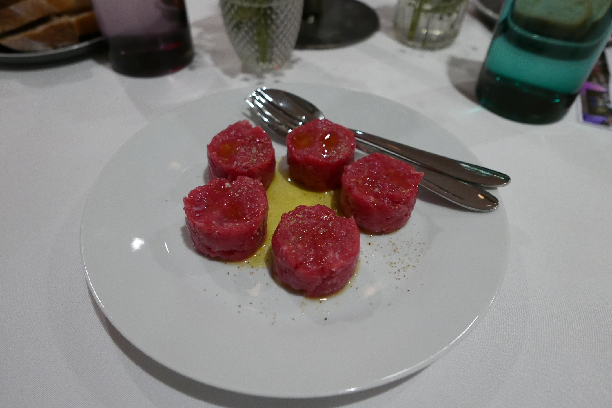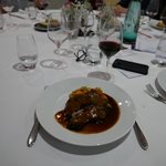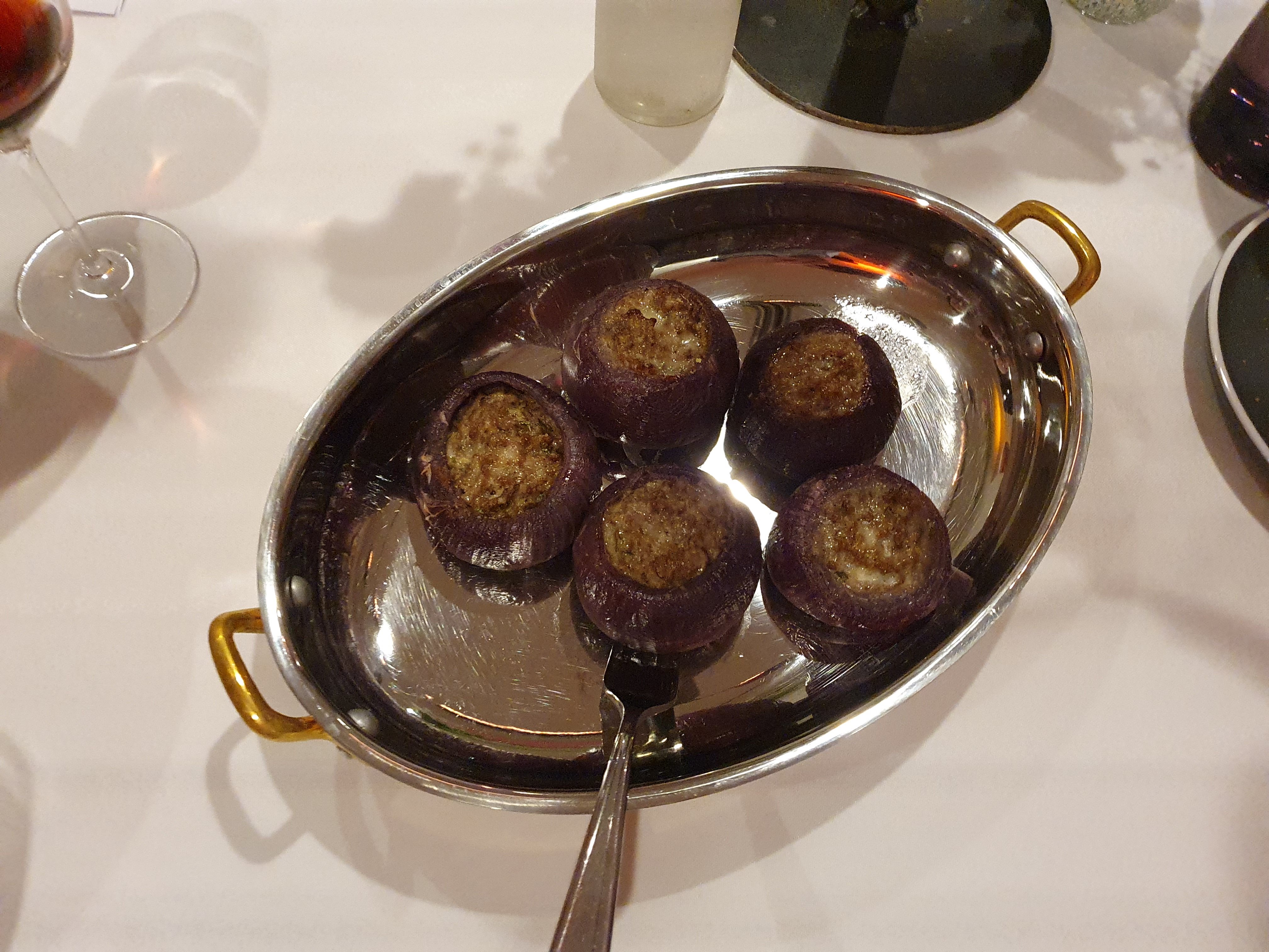 Als erste Vorspeise wurde uns ein für diese Region typischer Wintersalat mit Frischkäse, Baumnüssen, Honig und Birnen aufgetischt. Danach gab es ein vorzügliches Kalbstartar mit dem Messer nach piemontesischer Art geschnitten. Weiter wurden uns köstliche mit Hackfleisch gefüllte Zwiebeln (Cipolle Ripiene) serviert. Als Primi Piatti erhielten wir herrliche, frisch gemachte Nudeln mit weissem Trüffel angerichtet und danach einen schmackhaften Barolo Risotto. Ein wunderbar zubereiteter Rindsschmorbraten an einer Barolo Sauce mit Gemüse bildete den Hauptgang. Als Dessert wurde uns ein wohlschmeckendes Semifreddo al Torrone (eine halbgefrorene Glace) gebracht.