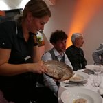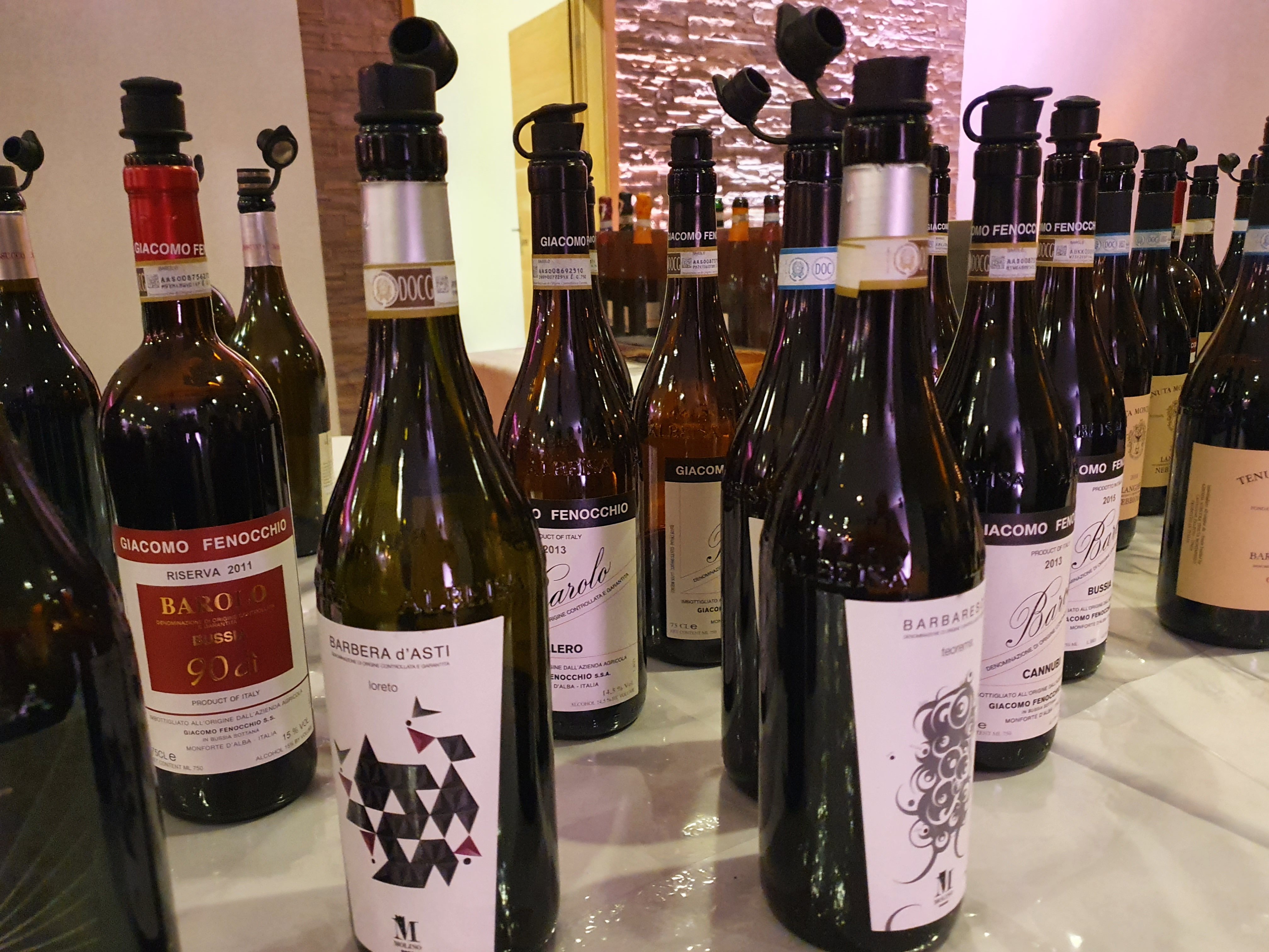 Nach dem ausgiebigen Apéro stiegen wir die Treppe in den Palazzo Barrica Prima hoch, wo uns das stets freundliche und aufmerksame Personal der Hugi Weine erwartete. Die Tische waren wie immer bei solchen Anlässen sorgfältig und wunderschön gedeckt bzw. dekoriert und die sanft brennenden Kerzen sowie die diskrete Beleuchtung im Raum rundeten das behagliche Ambiente ab. Wir kamen in den Genuss eins grossartigen 8-Gang Menü mit Spezialitäten aus dem Piemont. Dazu gab es die zuvor degustierten Spitzenweine, die auf einer Theke zur Selbstbedienung bereitstanden. Heinz Hugi erklärte den Gästen vor jedem Gang, welche Speisen mit welchen Zutaten Ihnen aufgetragen werden und was typisch piemontesisch daran ist.